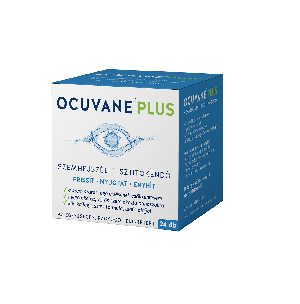 Égő, vörös, irritált, száraz szem hátterében gyakran áll a szemhéjak gyulladása, melyet az ott lerakódott szennyeződések és allergének valamint Demodex fertőzés is okozhat. A panaszok tartós enyhítéséhez elengedhetetlen a szemhéjszéli gyulladás kezelése melynek révén helyreáll a szemhéjakban levő könnymirigyek működése. Az OCUVANE® PLUS szemhéjszéli tisztítókendő hatékonyan eltávolítja a szemhéjszélen lerakódott szennyeződéseket, polleneket. Napi használata megszünteti elzáródását, ezáltal helyreáll az egészséges könnytermelés. A kendő teafa olaj hatóanyaga fertőtlenítő, gyulladáscsökkentő és regeneráló hatású, így segíti a panaszok hosszantartó enyhülését.