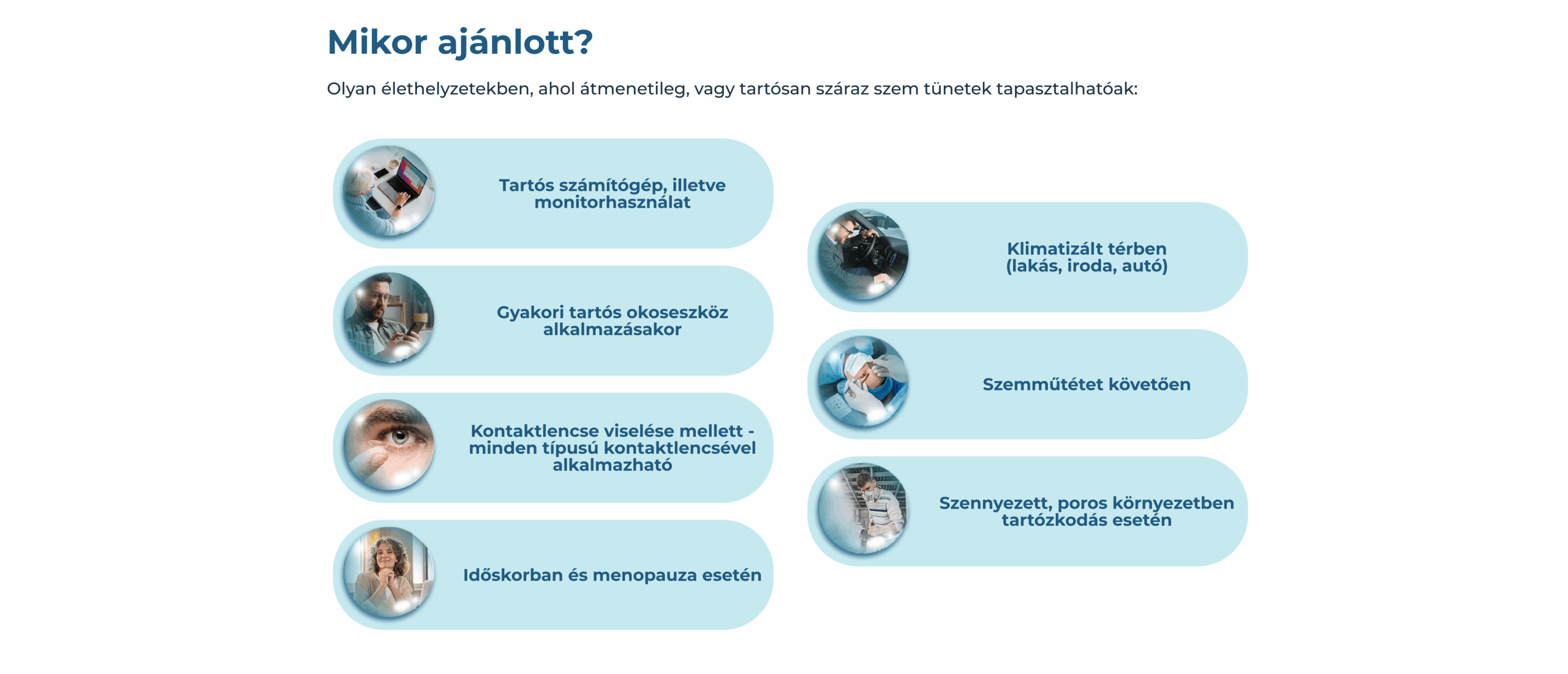A termék tehát minden beteg részére javasolt, akiknek a szemfelszín lubrikálására és az oxidatív